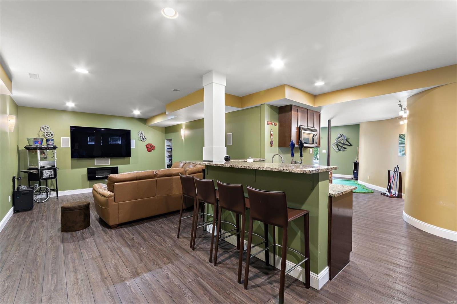 Immaculate custom-built 1.5-story home with meticulous maintenance and original owners. Over 5200 sq ft, boasting 5 beds, 4.5 baths, and endless upgrades. Features a stunning 17' 2-story great room, 9' finished basement with a custom curved wall, and 3 fireplaces. Luxurious travertine stone and hardwood floors throughout the main level, with frieze carpet in upstairs bedrooms. Gorgeous granite countertops in bathrooms and kitchen. Lower level boasts a bar w/ a second kitchen and a theater room. Entertainment-ready w/ indoor/outdoor surround sound, full-size wine fridge, and kegerator w/ dual tappers. Enjoy the outdoors with a fire pit, hot tub, composite, and vinyl deck, all within a natural arborvitae fence line. Extras include stainless steel appliances on both levels, radon system for peace of mind, and a wireless pet fence. Smoke-free and pet-free home. Spacious walk-in closets and an extra-large third car garage with a workbench. This home has it all and more!